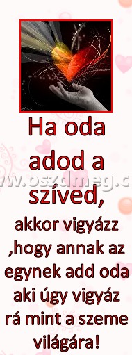 Ha oda adod a szíved, - akkor vigyázz ,hogy annak az egynek add oda aki úgy vigyáz rá mint a szeme világára!